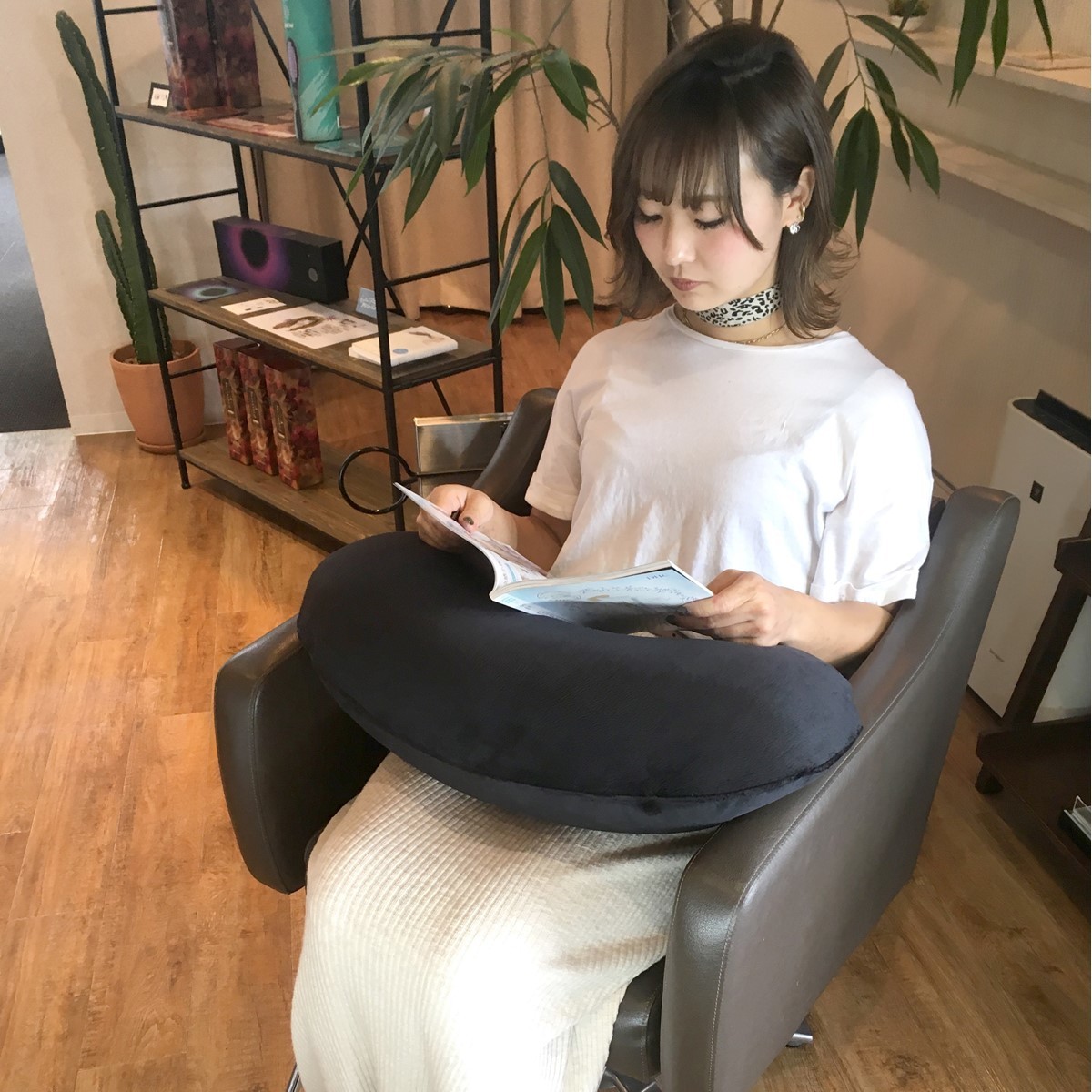 微粒子のマイクロビーズが入った、ふんわりソフトなクッションです。