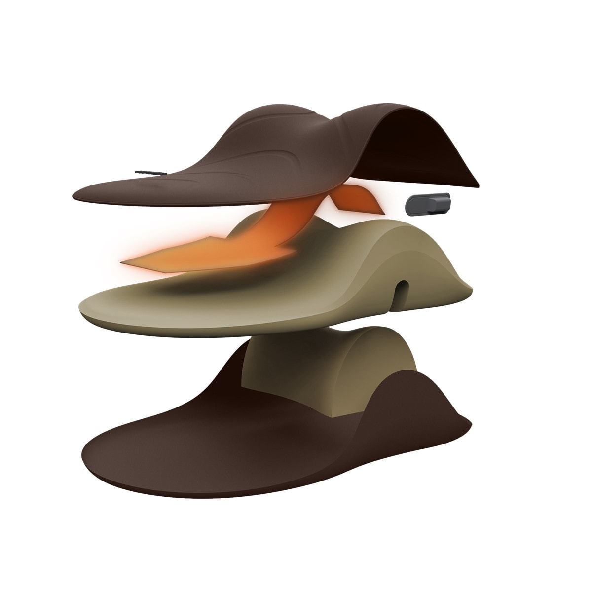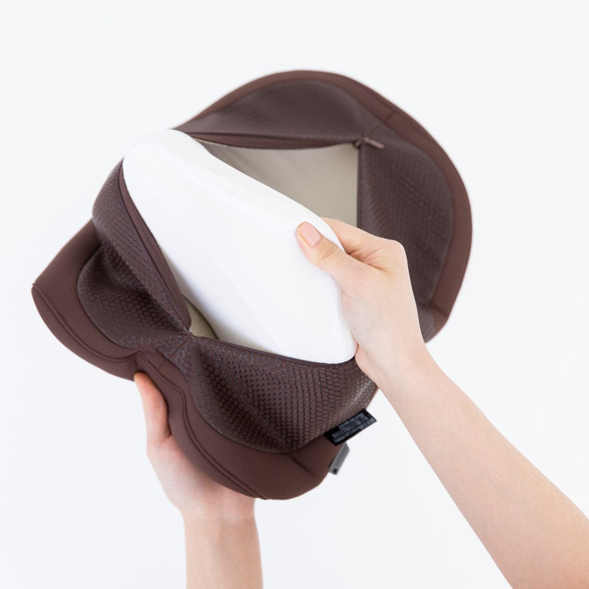 首から肩のカーブに優しく沿うよう設計された独自の流線形状と、首元を自然に支え続ける内部構造。